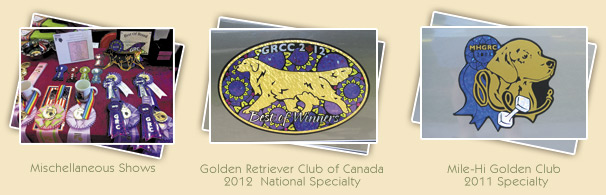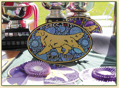 Design and colors of magnets are totally customizable to your club’s needs. The most popular trophy is the breed design combined with show rosette, with the rosette matching the AKC or parent club ribbon color scheme (purple & yellow for Best of Breed, for example). Magnets can be personalized with the club initials, show date, location, etc.